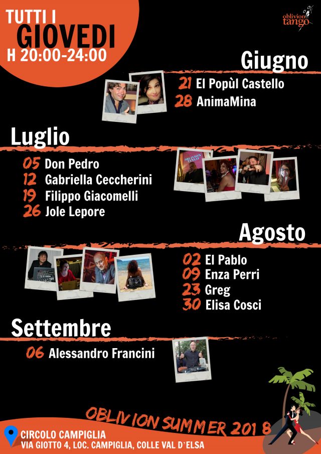 Ecco il tanto atteso calendario delle milonghe estive con una perfetta alternanza di consolle al maschile e al femminile
