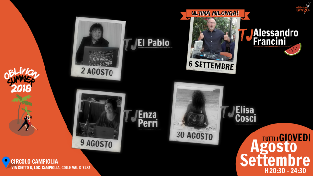 Ultima milonga di questa intensa estate 2018! Per l’occasione, alla consolle un frizzantissimo, lanciatissimo e brillantissimo (più –issimo di così!) Alessandro Francini da Firenze!