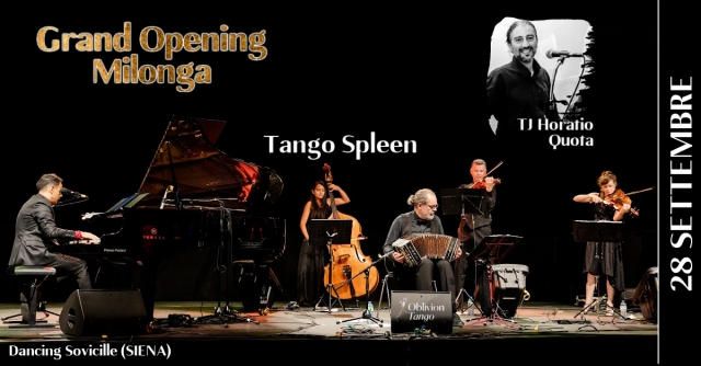 La Tango Spleen Orchestra è stata fondata nel 2008 dal pianista, cantante e compositore argentino Mariano Speranza e da allora ha portato la sua musica in giro per il mondo. Si compone di 5 elementi: piano/voce, bandoneon, viola, violino e contrabbasso. Vincitore del concorso “Suoni senza confini” per le composizioni originali, è l’unico ensemble europeo convocato per il ‘Festival Nacional del Tango de La Falda in Argentina’. I Tango Spleen vantano 6 lavori discografici originali e vari singoli e, rappresentano una delle orchestre più prestigiose e nel contempo originali del panorama tanguero.